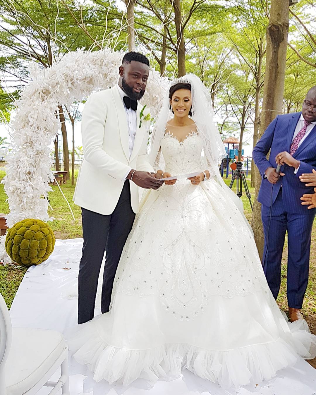 The white wedding of actor, Etim Effiong, to his fiancee, Toyosi Phillips, a writer/producer, took place in Lagos on Saturday November 3rd. Their wedding, which was dubbed #YorubaEfikMerger was a beautiful celebration of culture. Toyosi rocked an olive green and champagne colored AsoOke by Bisbod Ventures for her traditional engagement and her makeup by Iamdodos was refreshingly beautiful.