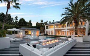 The property also has a guest house that includes a 20-seat screening room, gym, four-car garage, and a pool and pool house.