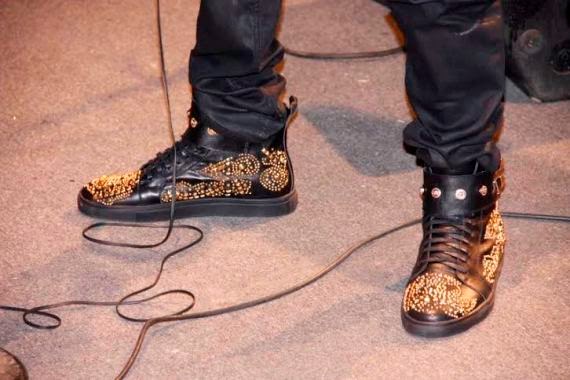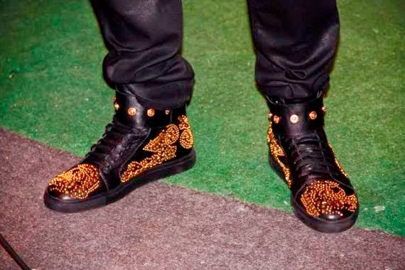 2Face was seen wearing a customized gold encrusted Versace sneakers worth N1million, during the video shoot of music giants, Tunde and Wunmi Obe on Tuesday May 20th.