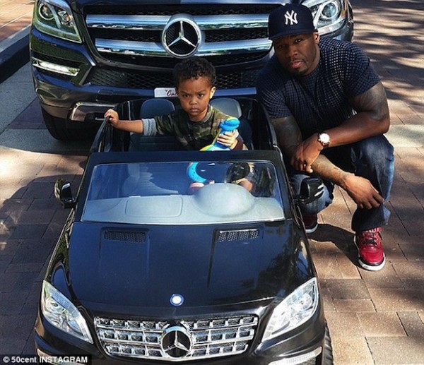 50 cent surprised his son Sire with a little Mercedes ML450 SUV, a smaller representation of his own vehicle, in celebration of his second birthday.