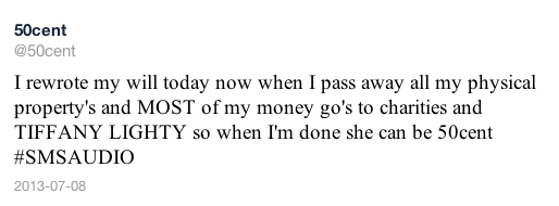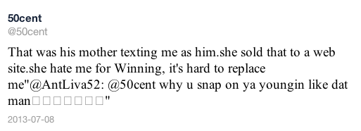 After an embarrassing and kinda funny text message exchange between 50 Cent and his 15 year old son Marquise leaked online read here, 50cent has cut him and his mother off his will. He also blamed Marquise’s mother for the leak to Radar Online.