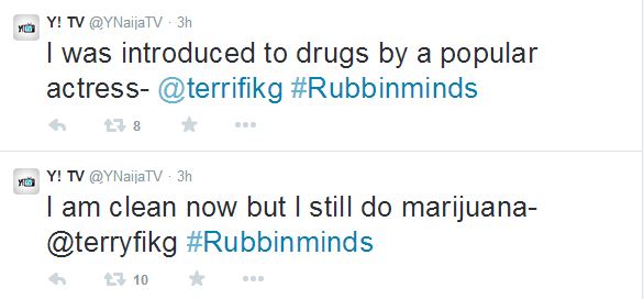 A popular Nigerian actress introduced me to drugs – Terry G Posted by: b3rrilyn in Celebrity News Sep 8, 2014 Ginger master, Terry G was a guest on youths program Rubbing Minds today on Channels TV and according to the singer, a popular actress introduced him to drugs. Terry G 2014-09-08 b3rrilyn