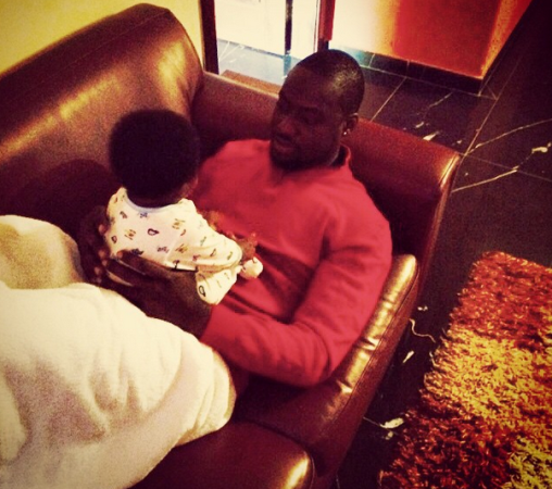 Chris Attoh shared this cute photo on his instagram page this morning. He’s pictured with his 3-month old son with fiancee Damilola Adegbite…