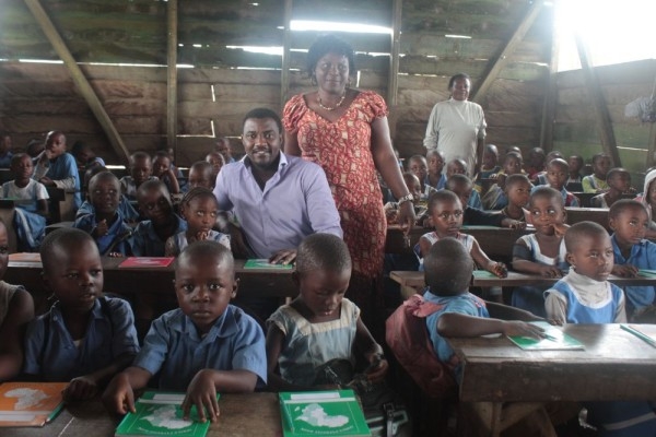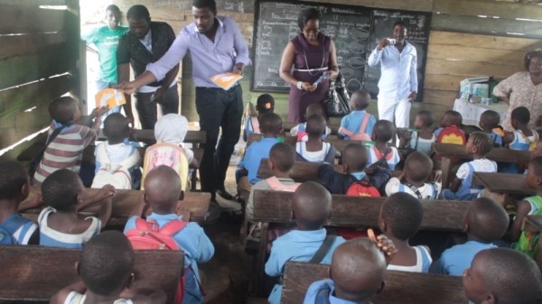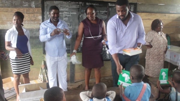 Ghanaian actor John Dumelo decided to donate school supplies which included pencils, exercise books and erasers to over 100 pupils of the St. John Of God Catholic School in Cameroon via his non-profit organization, the John Dumelo Foundation. Really nice of him.