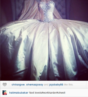 Halima recently posted a wedding gown picture and dropped a note which reads, “next levels”. It is not certain if she is just trying to catch fun with the post or she meant it.