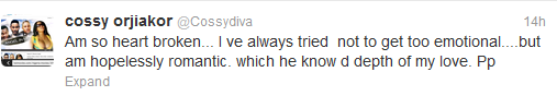 ‘Am so heart broken’ – Cossy Orjiakor cries out Posted by: b3rrilyn in Celebrity News Aug 19, 2013 Cossy and her drama. lol cossy orjiakor 2013-08-19 b3rrilyn