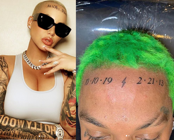 Amber Rose and her boyfriend, Alexander “AE” Edwards have gotten forehead tattoos in honor of their children.