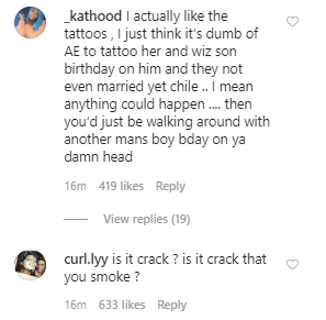 She simply inked tattoos of her sons’ names on her forehead and AE got tattoos of both sons’ dates of birth tattooed on his forehead.