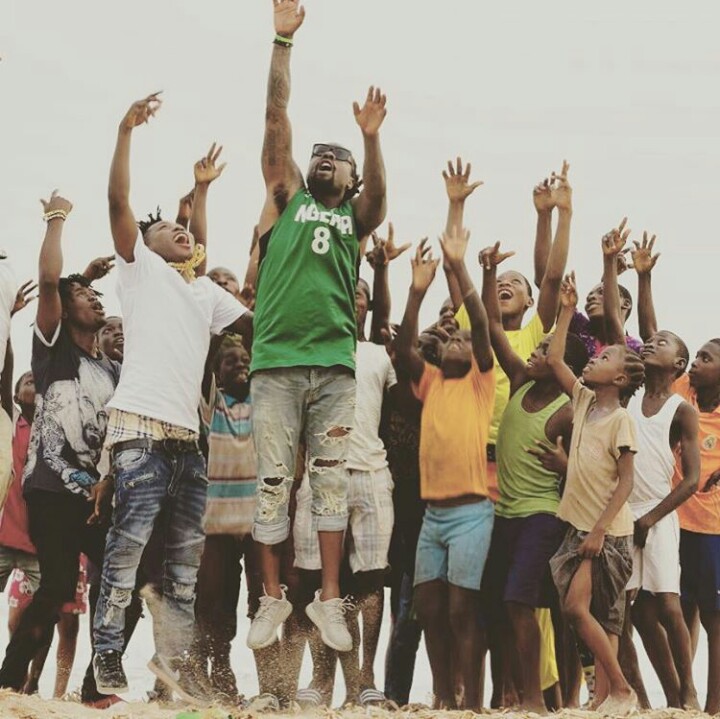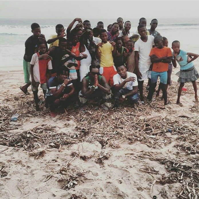 He is pictured chilling out with Reekado Banks and some local indigenes at a Lagos Beach.