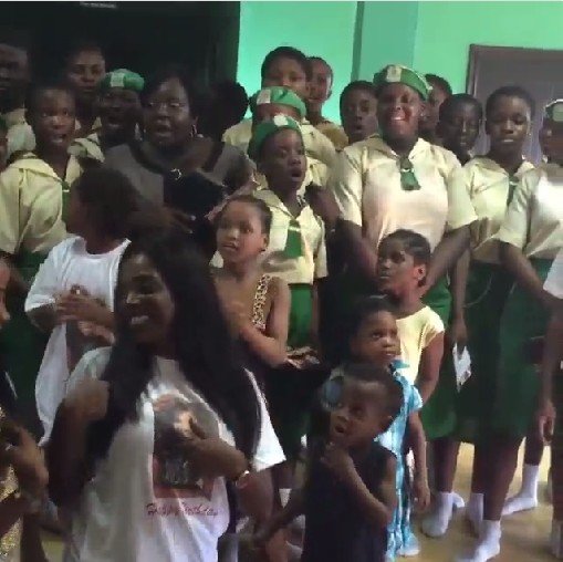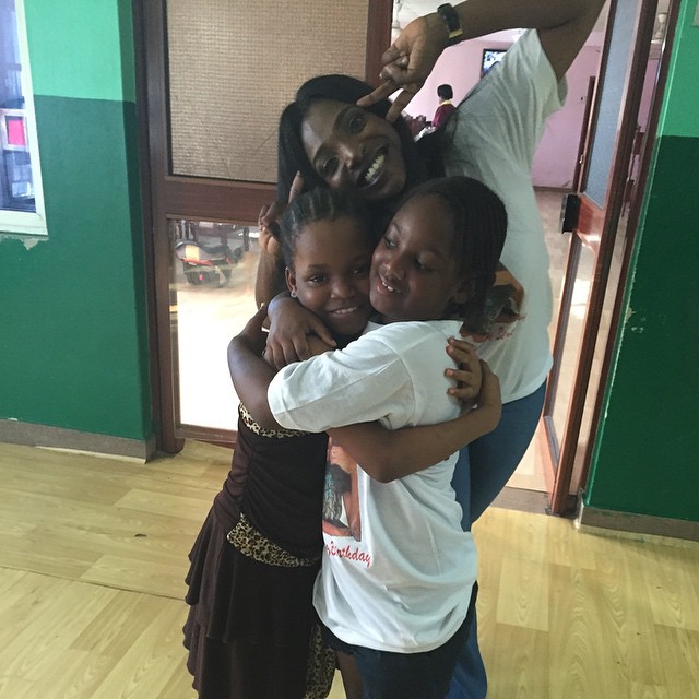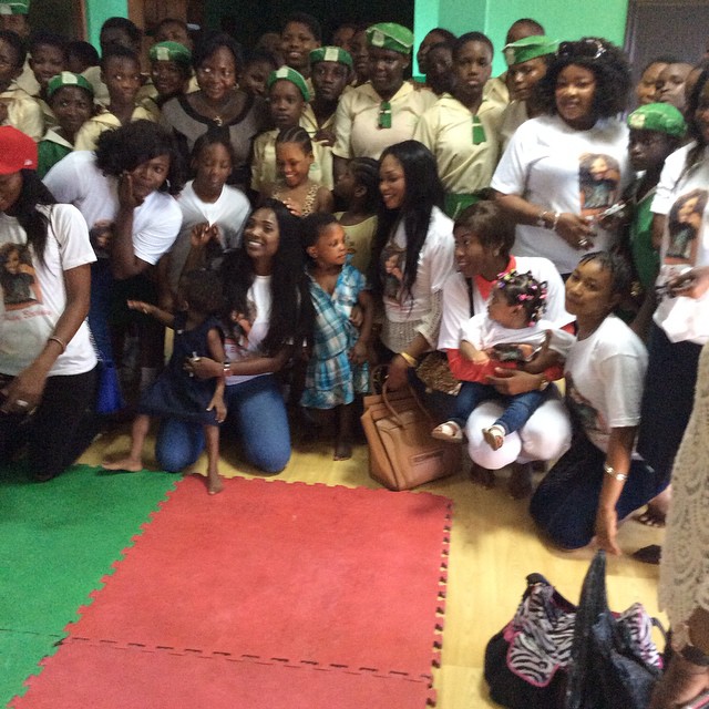 Annie Idibia and daughters Isabel, Olivia visit charity home