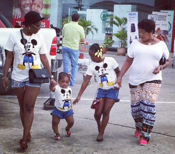 Annie Idibia & her girls rock matching mickey mouse outfits Posted by: b3rrilyn in Celebrity News May 17, 2015 She said they went to run some errands. They look fab in their matching outfits Annie Idibia 2015-05-17 b3rrilyn