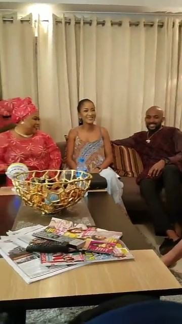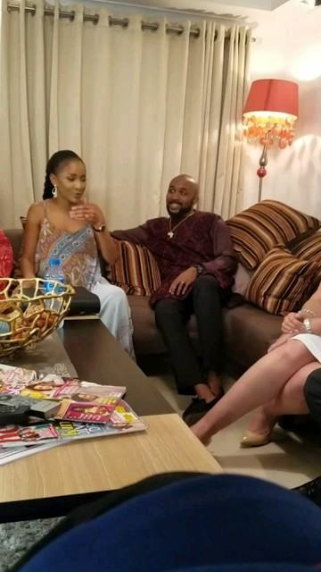 Banky W and fiance pictured on set The Wedding Party 2