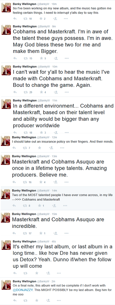 R & B singer turned rapper, Banky W spoke about how he has worked with some genius producers and how talented they are, he gave shouts to Cobhams Asuquo, Don Jazzy and Masterkraft.