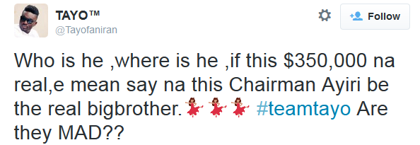 Recall that viral reports claimed, Tayo was given a sum of $350,000 by Billionaire Ayiri Emani who felt he was cheated in the house and decided to compensate him, but Tayo said it was nothing but just a mere rumour.