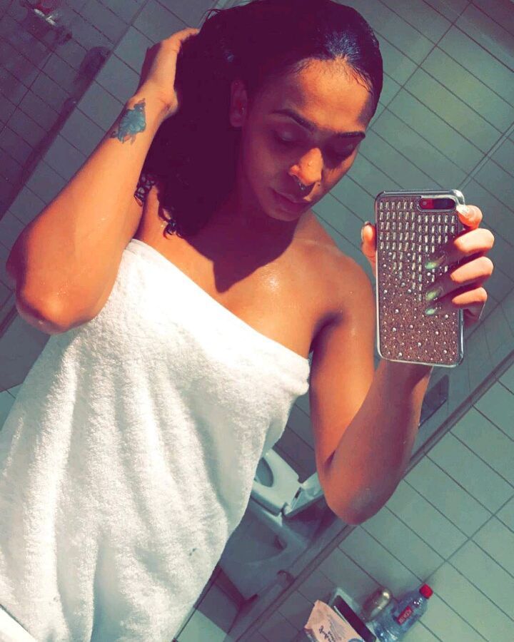Tboss showed off her pierced nipples as she was undressing in the presence of other contestants in their locker room.