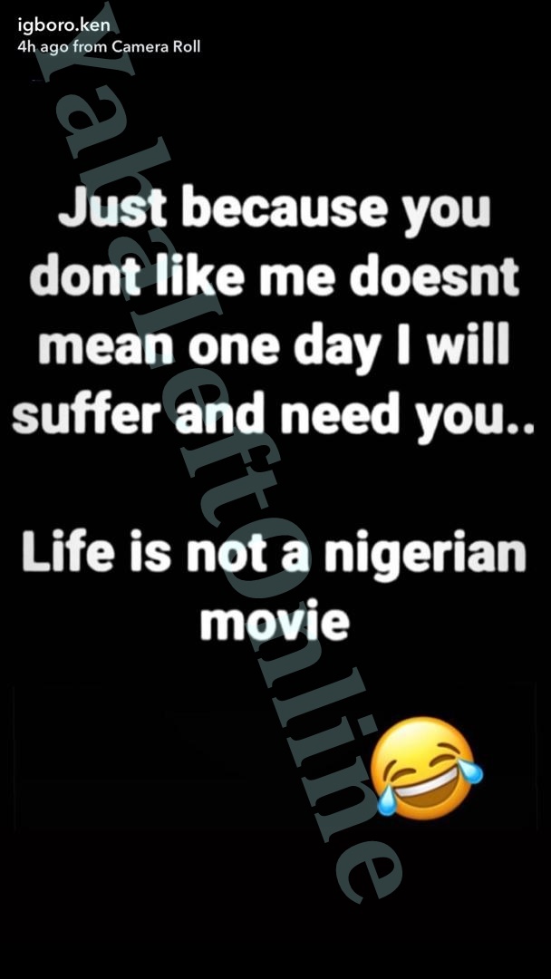 His words, “Just because you don’t like me doesn’t mean one day i will suffer and need you.”