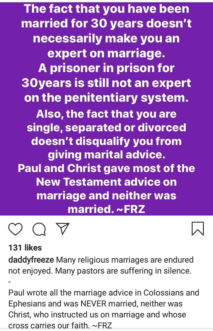 According to him, being single or divorced also doesn’t disqualify people from giving marital advice as well.