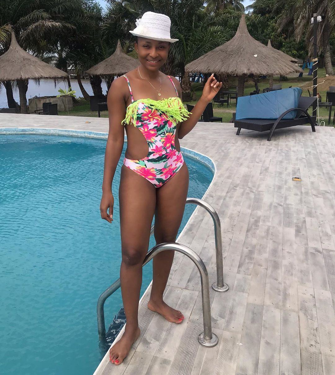 Nollywood actress, Belinda Effah has gone on Instagram to flaunt her amazing body as she posed by the poolside wearing a stunning swimwear.