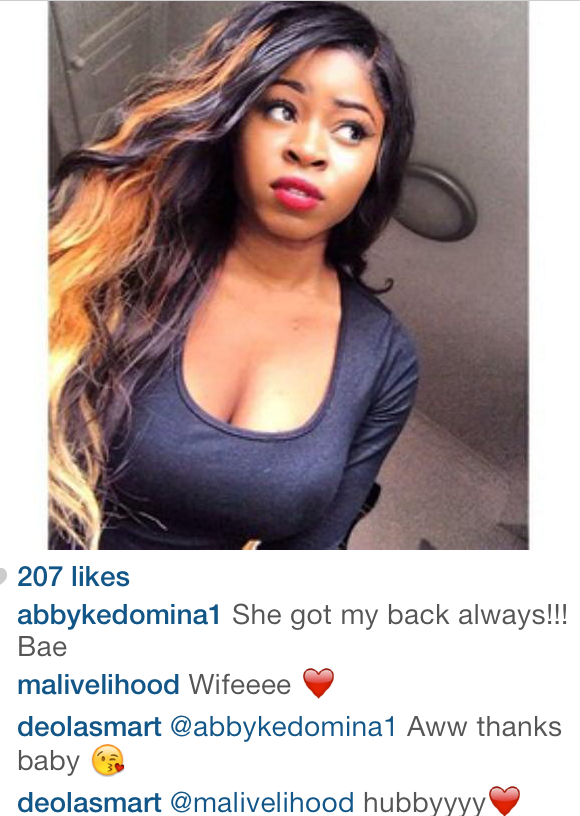 Tonto Dikeh‘s ex-boyfriend, luxury designer Michael Awujoola aka Malivelihood is currently dating Deola Smart, the daughter of a Kogi district senator. Last night Deola’s friend, designer Abbyke Domina uploaded Deola’s picture on her page, and Malivelihood commented, calling Deola his wife. Deola replied and called him her hubby