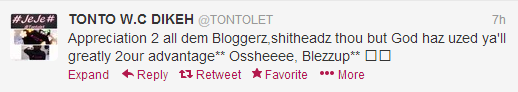 Bloggers Are Shit heads! Says Tonto Dikeh Posted by: b3rrilyn in Celebrity News Apr 11, 2013 The POKO queen herself has come out to appreciate bloggers in her own way. She took to twitter to say that God has used bloggers ‘shitheads’ to her advantage. We would love to know your thoughts on this post. Drop your comments Bloggers Tonto Dikeh 2013-04-11 b3rrilyn