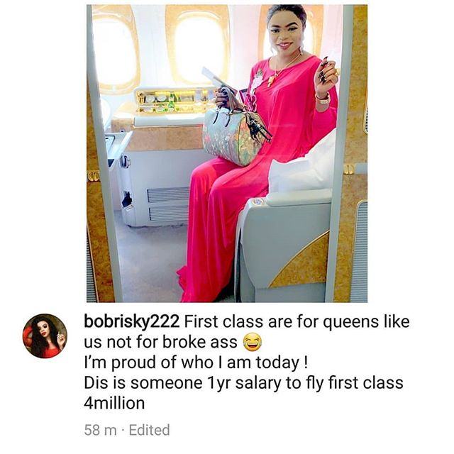 Nigerian cross-dresser, Bobrisky has jumped on Instagram to flaunt photos of himself on his way to Dubai, in a plane, flying a first class.