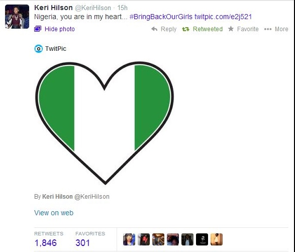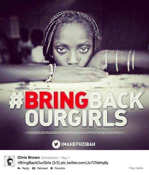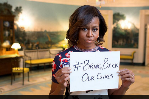 #BringBackOurGirls : Mitchelle Obama, Drake and others join the cause | Photos Posted by: b3rrilyn in News May 8, 2014 First Lady of the United States of America and others have also stepped forward to lend a voice to the #BringBaackOurGirls saga currently turning into a global issue. Chris Brown Drake Michelle Obama 2014-05-08 b3rrilyn