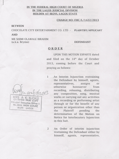 Chocolate City allegedly have an injunction against Brymo, which he denied at first, the injunction prevents him from performing, recording or distributing his material; most recently his 3rd studio album which was just released.