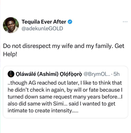 Also reacting, Adekunle revealed rather than speaking nonsense about others, Brymo should instead seek help because he clearly needs one.
