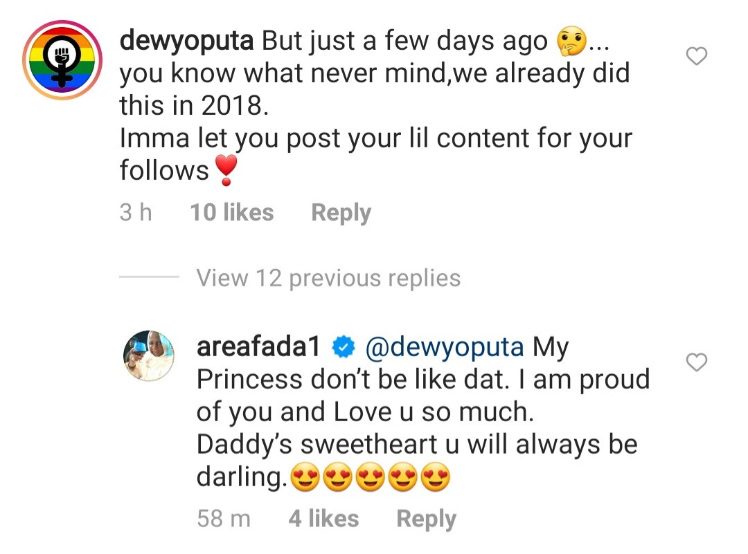 Dewy Oputa recently revealed that her dad is obviously using her story for follows, and she does not appreciate it.