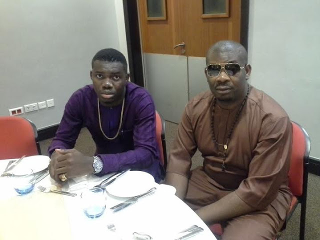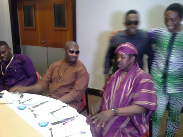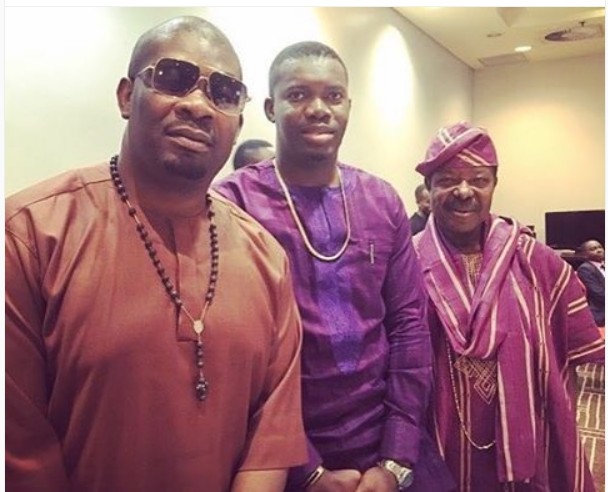 Multi award winning, prolific music producer, singer, Don Jazzy and legendary musician, King Sunny Ade share an epic pose during an event in Lagos as seen above.