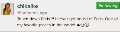 Chika Ike who flew first class to the city of romance, Paris. Is obviously having the time of her life judging from these photos.