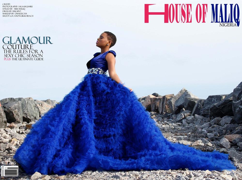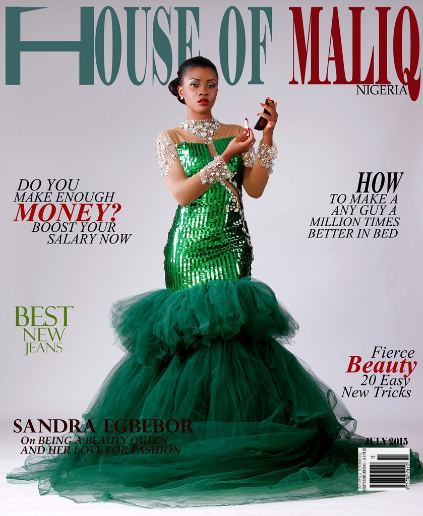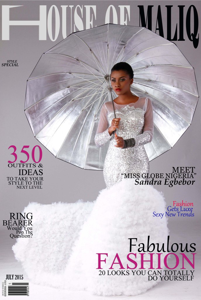 Sandra Ogbebor on the reverse cover is classy in a beautiful stunning glittering gown from the same designer.