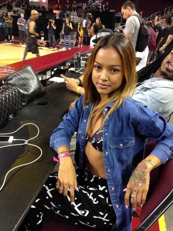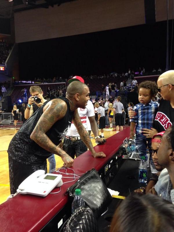 She was seen with Chris Brown‘s lil niece as she watched her man play. Chris Brown was always at her side at every lil chance he got according to eye witnesses