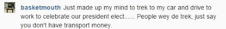 Comedian Basketmouth joins the treks to congratulate president-elect