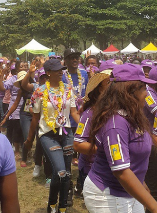 Just like every other parent, the Idibia’s are involved in their daughter’s school activities. Annie shared photos from her daughter Isabella’s school’s inter-house sports day where she and 2face joined other parents to march.