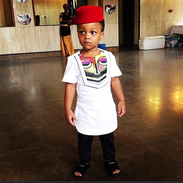 Paul Okoye‘s wife, Anita shared this photo of her son’s attire to his cultural day in school with the caption:
