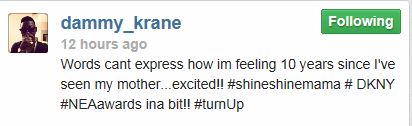 Words cant express how im feeling 10 years since I’ve seen my mother.. excited!! #shineshinemama # DKNY #NEAawards ina bit!! #turnUp