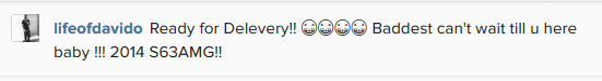 Davido acquires a N22 millon 2014 Mercedes-Benz S63 AMG Posted by: b3rrilyn in Celebrity News Apr 22, 2014 Barely three months after he got himself a N30m Benz G-Wagon last January! A 2014 Mercedes-Benz S63 AMG goes for between $127,875 to $212,905, average paid is $140,000 – N22.4million. Davido 2014-04-22 b3rrilyn