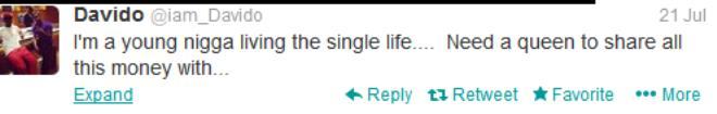 “I’m a young nigga living the single life – – need a queen to share all this money with..” he’s declaring that he is single again.