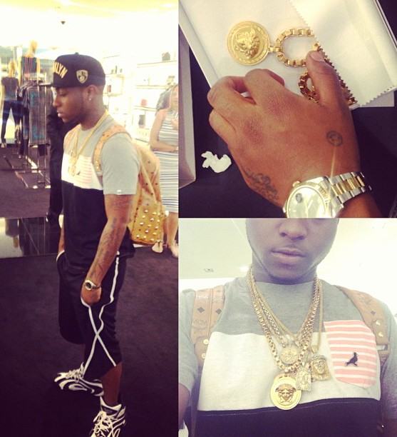 He flaunted his new Versace piece with the caption