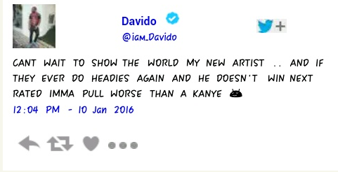 YBNL Olamide famously ranted after his artiste didn’t win and Davido has promised he will do worse than Olamide did by pulling a Kanye on them (the Headies organizers) when the time is right.