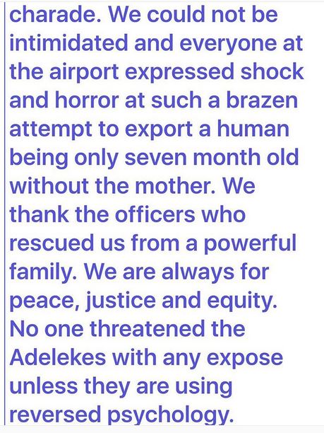 This comes after Davido and his family were prevented from traveling to Dubai with the baby after Sophie alleged the baby was being abducted without her consent