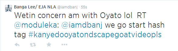 K I go do video for Oyato and for Scapegoat rmx, Make una go beg Kanye to shoot am as he is Officially now ONE. Lol