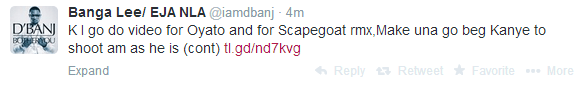 A fan lashed out at Dbanj for not shooting videos for songs like Oyato and Scapegoat rmx with Kanye, the fan said Dbanj needs to work on his decision making ..Dbanj saying he will shoot the video if his fans can beg Kanye as he is officially one