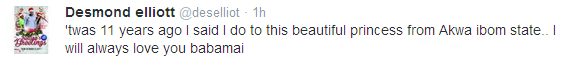 Desmond Elliot and wife celebrate 11 years wedding anniversary Posted by: b3rrilyn in Celebrity News Dec 26, 2014 The couple are blessed with four children…happy anniversary to them! Desmond Elliot 2014-12-26 b3rrilyn