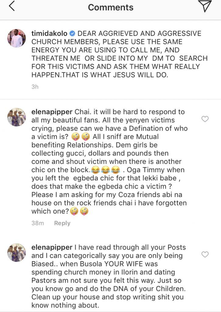 This is according to Instagram user @elenapipper who shared his reaction to Timi Dakolo accusing a COZA pastor of sleeping with members of his congregation.