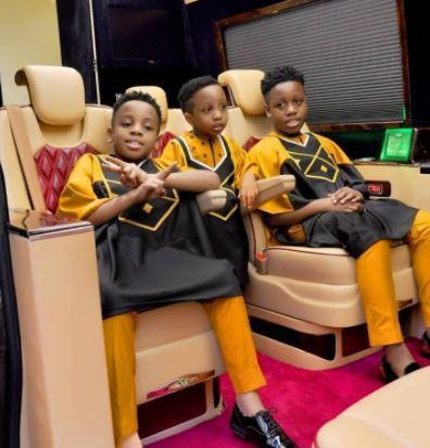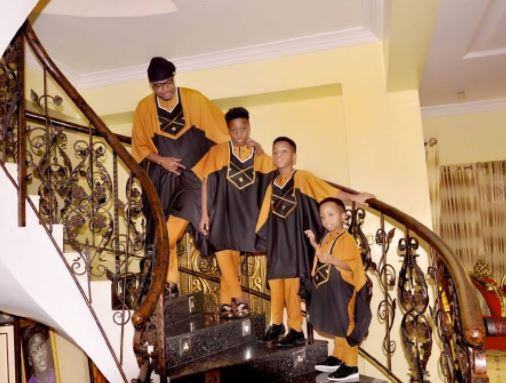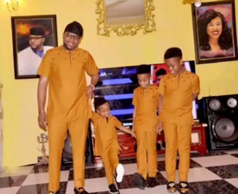 E-Money shared these stylish photo with his 3 sons in matching outfits to celebrate the 4th birthday of his youngest son, Chuks.