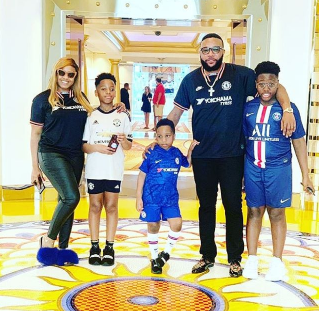 Popular music CEO, and brother to singer Kcee, Emeka ‘E-Money’ Okonkwo, who is presently on vacation in Dubai with his family has flaunted an amazing picture of them posing together.