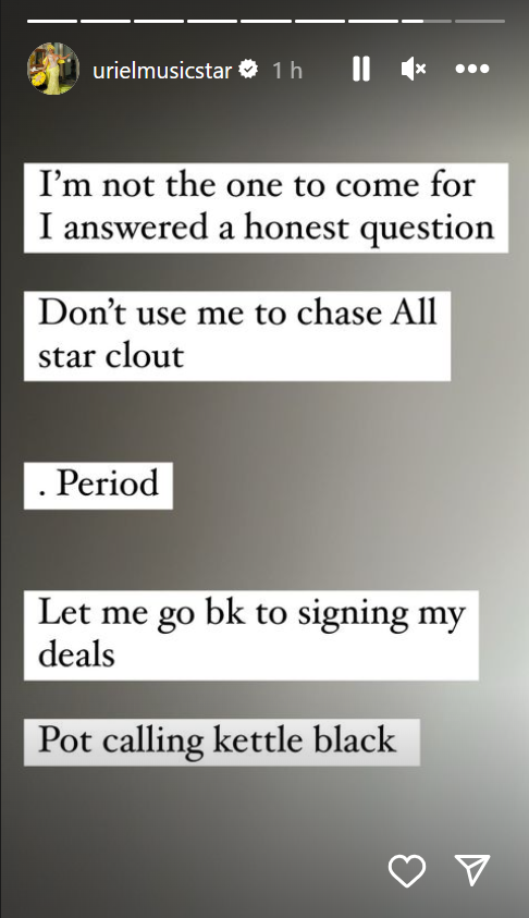 Reacting to the jibe, Uriel simply said that Erica should not use her to chase clout because she was only responding to a question during the interview.