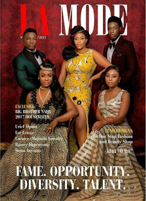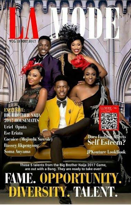 Ese, Uriel, Cocoice, Soma and Bassey cover La Mode Magazine (Photos) Posted by: b3rrilyn in Celebrity News May 8, 2017 Ex-Big Brother Naija housemates, Ese, Uriel, Cocoice, Soma and Bassey are on the May issue of La Mode Magazine. See more photos Bassey Cocoice Ese Soma Uriel 2017-05-08 b3rrilyn